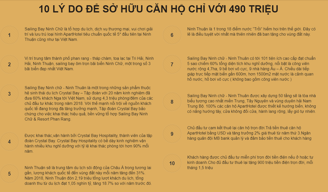 Tất cả những lợi thế trên, tạo nên cho Sailing Bay Ninh Thuận những ưu thế hàng đầu để trở thành một dự án bất động sản đắt giá, điểm đến lý tưởng không thể bỏ qua của du khách khi tham quan du lịch, khám phá vẻ đẹp vùng đất Ninh Thuận – Tiểu Tây Á bên bờ biển Đông